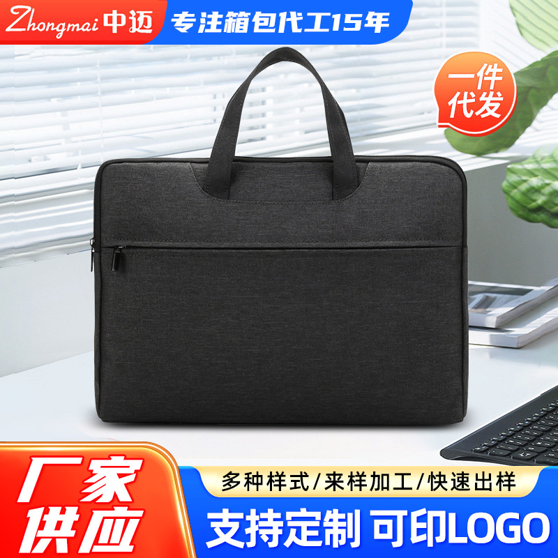 Tas komputer pria berbahan kain Oxford anti air, model sederhana dari pabrik terpilih, dengan ritsleting, multi-lapis, dan portabel untuk dokumen.