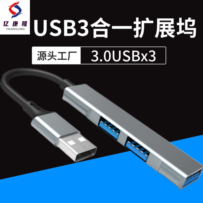 Dock ekspansi tiga dalam satu logam USB 3.0 konverter HUB kecepatan tinggi satu hingga tiga notebook yang berlaku pembaca kartu flash disk USB notebook