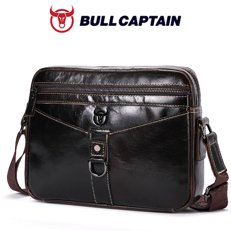 Captain Niu tas selempang kulit pria, kantung bahu komputer kulit sapi lapisan pertama kasual ipad