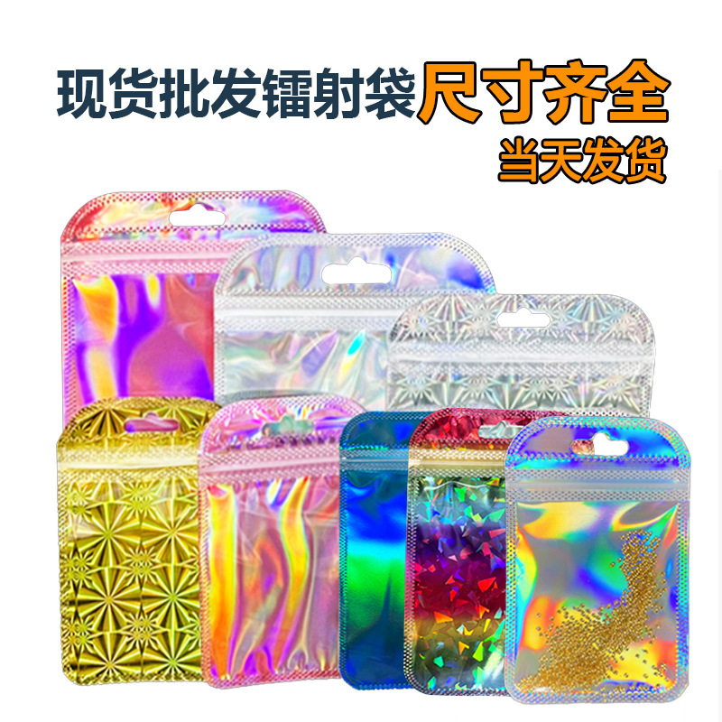 Laser tas ziplock laser warna kilat bubuk kantong plastik grosir peralatan rias kuku perhiasan laser tas kemasan