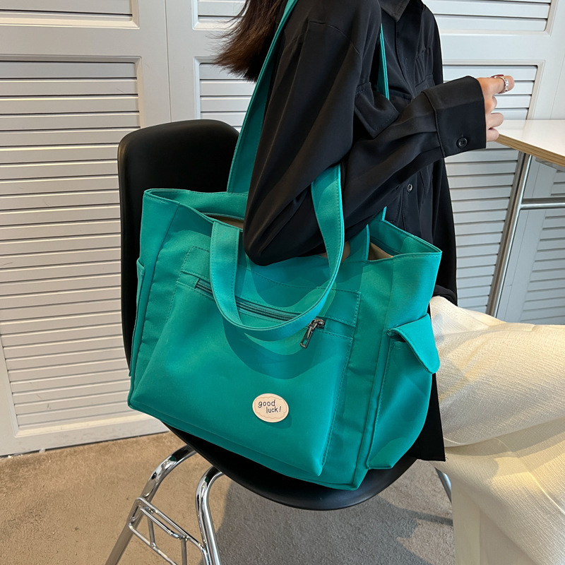 Tas bahu portabel wanita, tas kanvas gaya malas, kapasitas besar, tas komputer kelas murid, tas tote portabel 2024