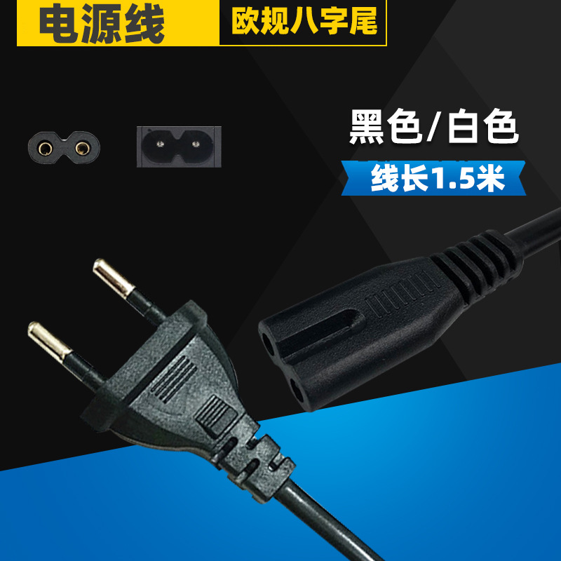 Kabel printer kabel daya dua plug Eropa, dua inti colokan Eropa, lampu meja skala elektronik putih