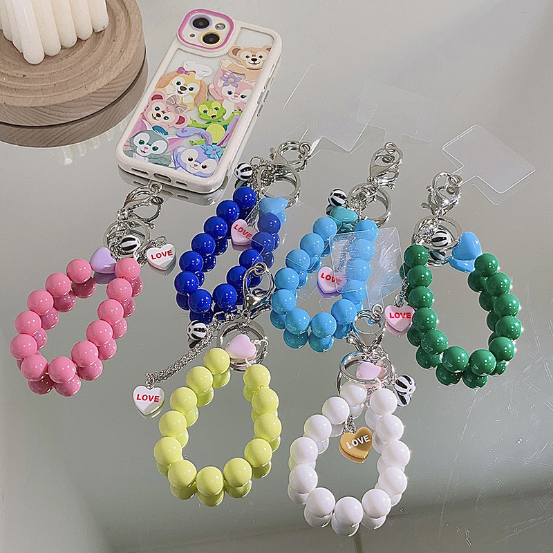 Casing Ponsel Manik-Manik Mudah Dipadu Padan Warna Polos Trendi INS Aksesori Gantungan Kunci Tas Kamera Model Korea Universal