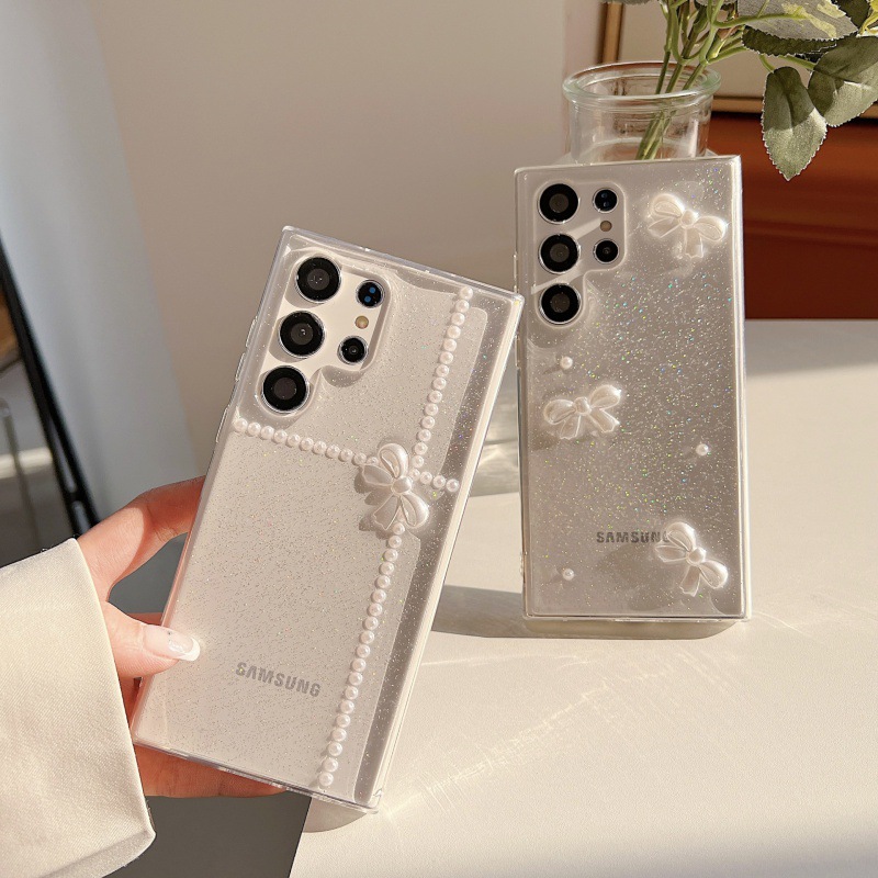 Casing ponsel kristal simpul Epoxy mutiara untuk Samsung S23U/S22 +/S24/A73 5g/A54 transparan