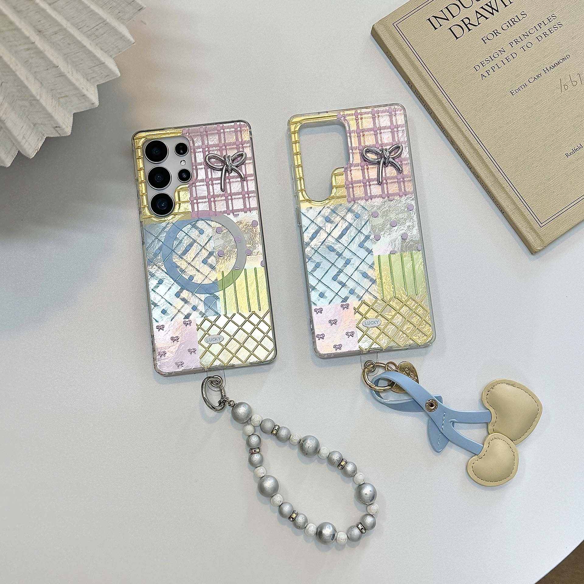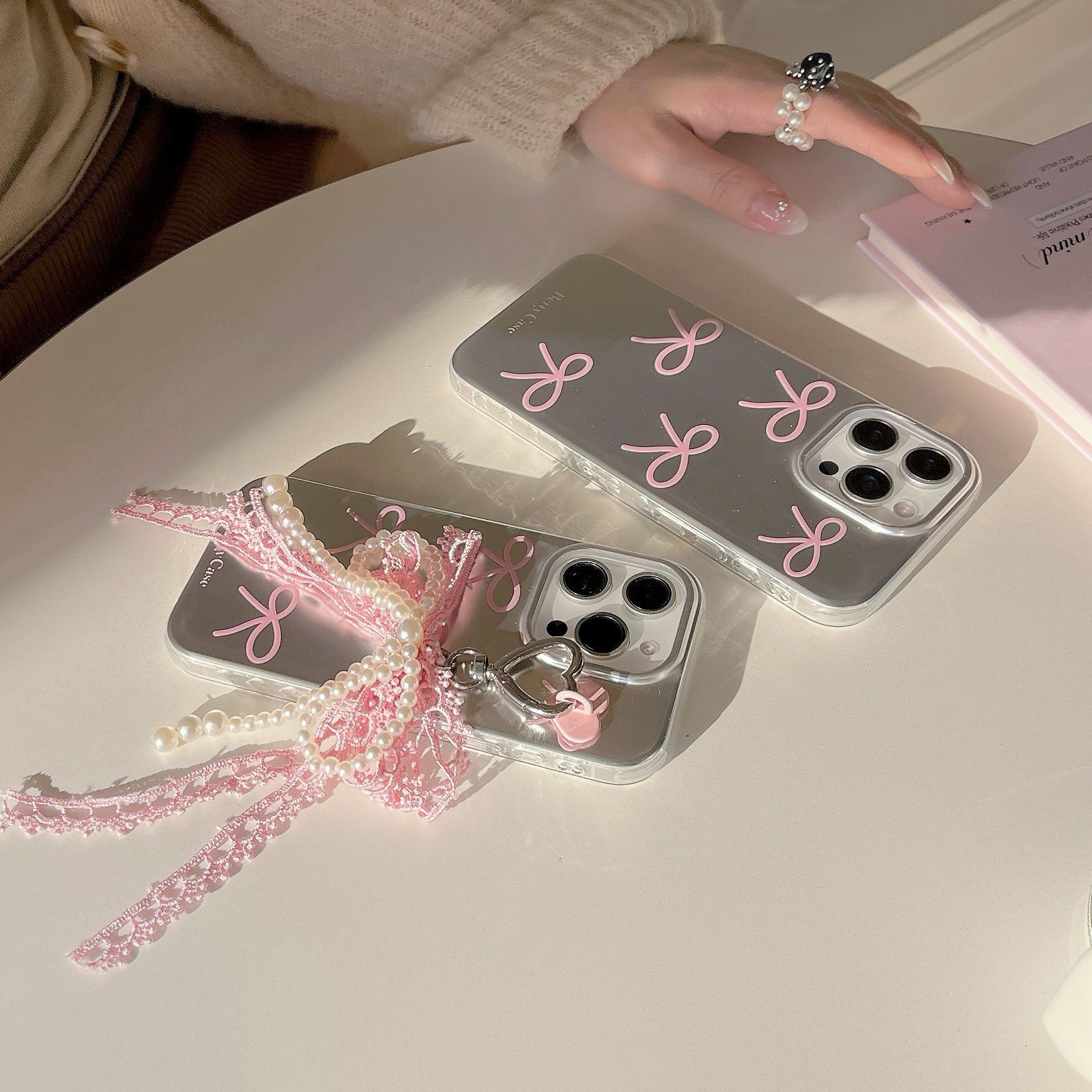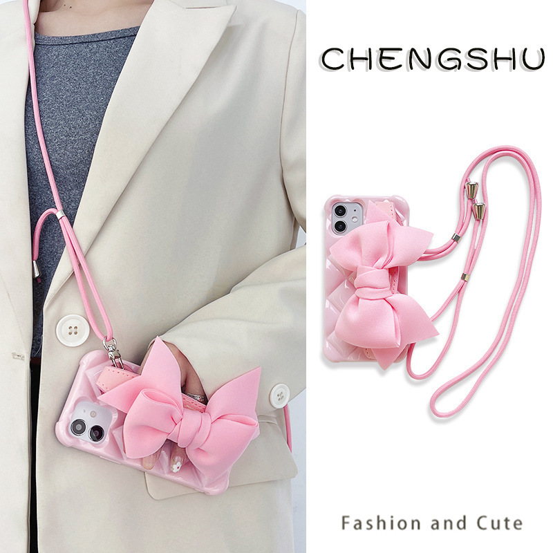 Cocok untuk Casing Ponsel Gelang iPhone 16 Jepang dan Korea Pita Merah Muda Apple 13 Pro Max Gaya Ransel Selempang 14