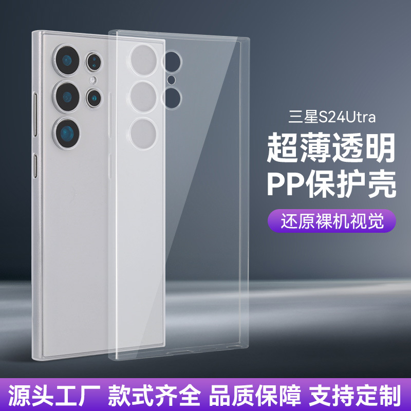 Casing Ponsel Cocok untuk Samsung S24ultra Casing Pelindung Tidak Berwarna Kuning Anti Jatuh Semua Tertutup Lubang PP Transparan Super Tipis 23