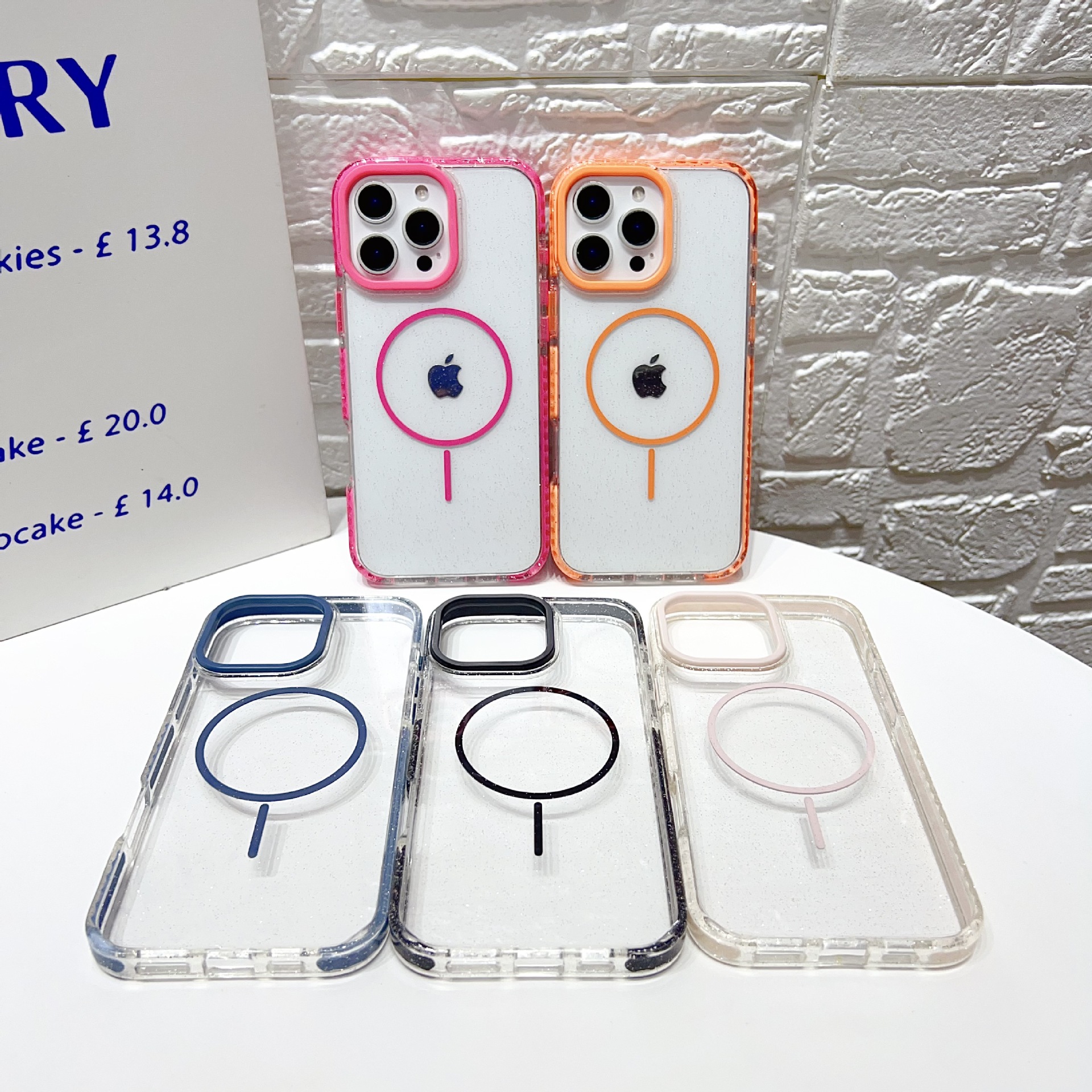 Bedak glitter dua warna cocok untuk casing ponsel Apple 16 Transparan magnetik anti jatuh pelindung Apple 16promax