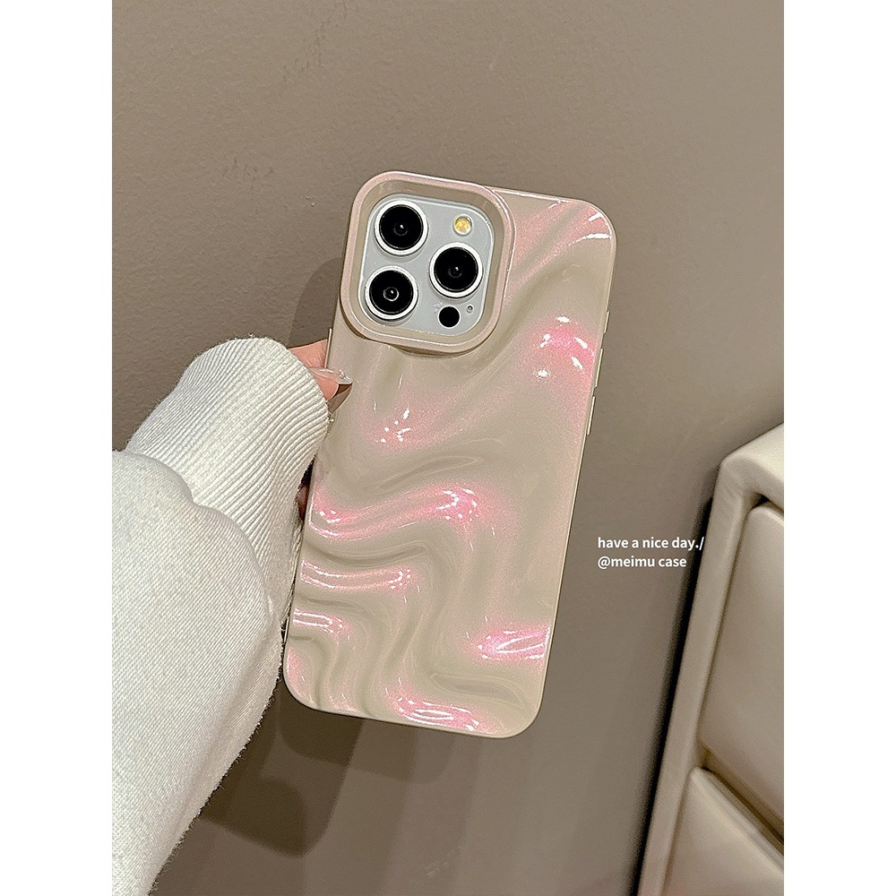 Casing Ponsel Apple 16Promax Cocok untuk Lipit Bergelombang Air Niche Sarung Anti Banting 15Pro Wanita 15Pro Sederhana 14Pro Model Baru 14Pro 12 Warna Polos 14 Warna