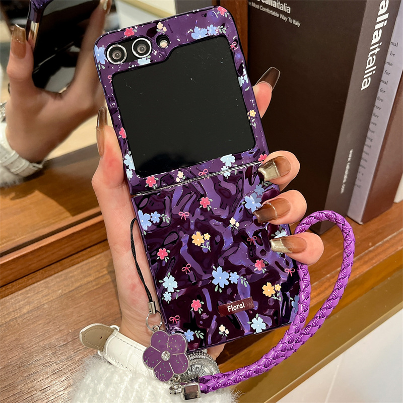 Casing Ponsel Cocok untuk Samsung Zflip6 Zflip5 Layar Lipat Pelapis Bunga Kecil Zflip4 Casing Ponsel Model Wanita Anti Jatuh