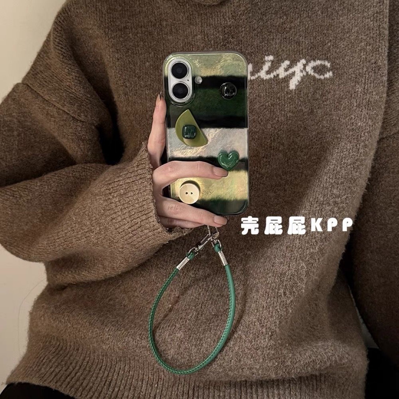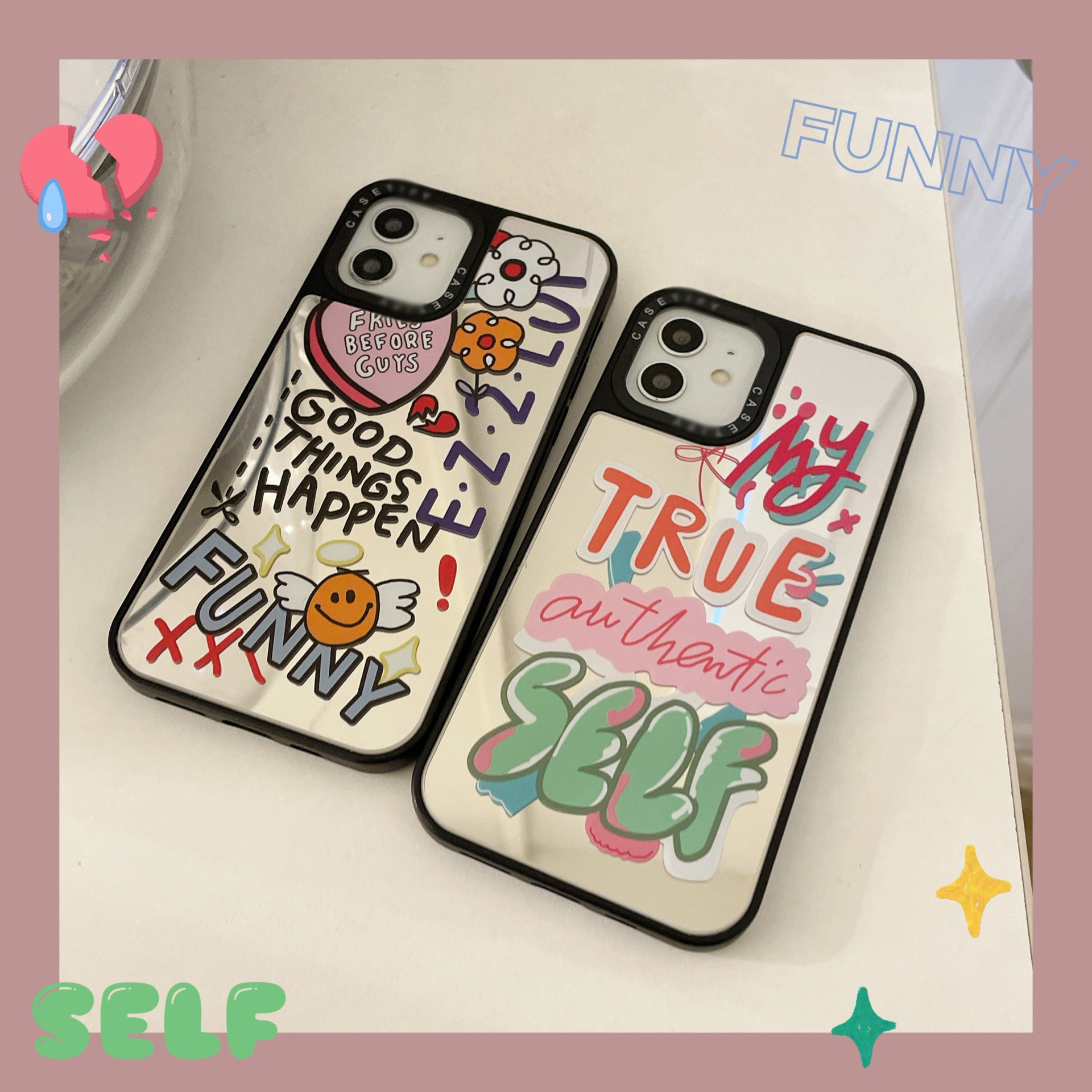 Casing cermin grafiti wajah tersenyum merek C kualitas tinggi, cocok untuk iPhone 16, Apple 17, gaya Eropa dan Amerika, trendi dan modis untuk iPhone 15.