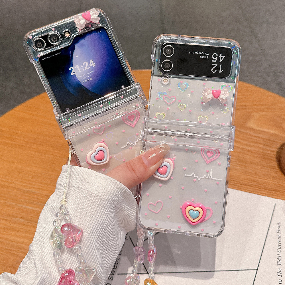 适用三星zflip7折叠手机壳 ins镭射立体爱心三件套手链手工保护套