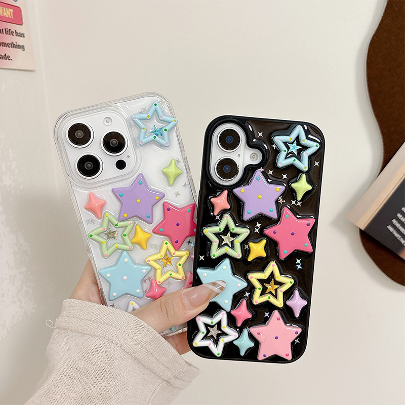 适用苹果17彩色星星手机壳iPhone17AIR滴胶防摔软壳15promax批发