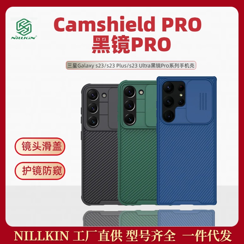 Nillkin casing ponsel Samsung S23 ULTRA, casing penutup geser lensa semua termasuk s23 hitam cermin PRO