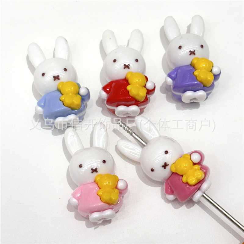通孔树脂站姿兔子卡通可爱串珠笔饰品配件手机链钥匙扣挂件手工