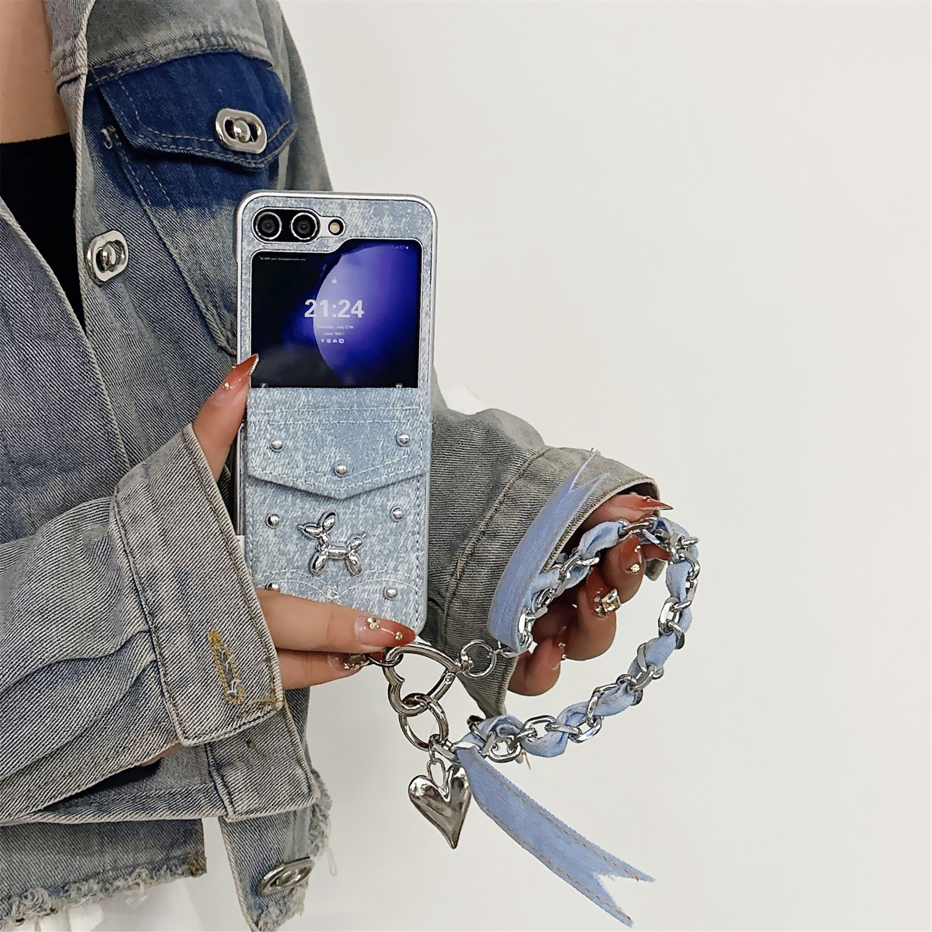 Dompet Kartu Denim Cocok untuk Samsung ZFlip 6 Casing Ponsel Galaxy ZFlip5/4/3 Lipat Case Case Kreatif