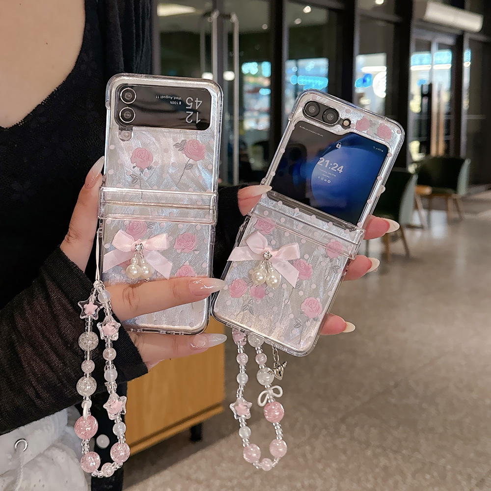 Berlaku untuk Samsung z flip3/4/5 casing ponsel love pearl Gelang penutup pelindung Huawei p50pocket patch