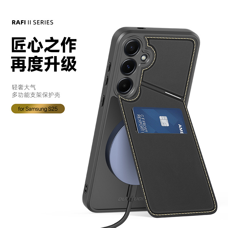 Cocok untuk Samsung S25Plus Casing Ponsel Multifungsi S25Ultra Penyangga Serap Magnetik Sisipan Kartu Casing Belakang Pabrik Grosir