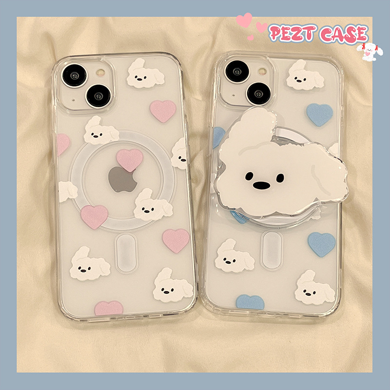 Casing HP iPhone 14 dan 15 Pro Max transparan motif anjing lucu imut, magnetik, cocok untuk iPhone 16