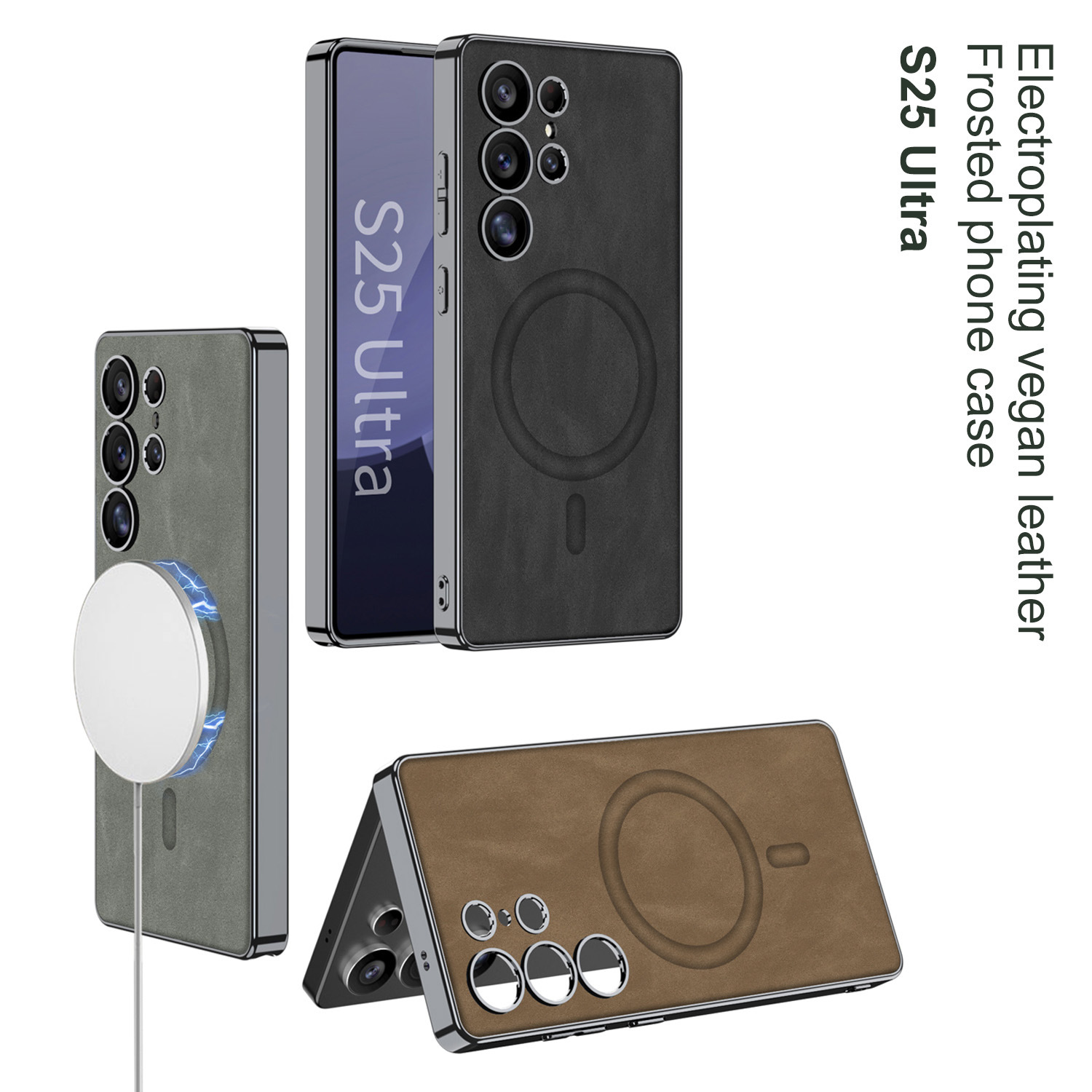 Casing Ponsel Samsung S25 Lintas Batas Sarung Pelindung Ponsel Kulit Magnet Built-In S25ultra MagSafe Nirkabel