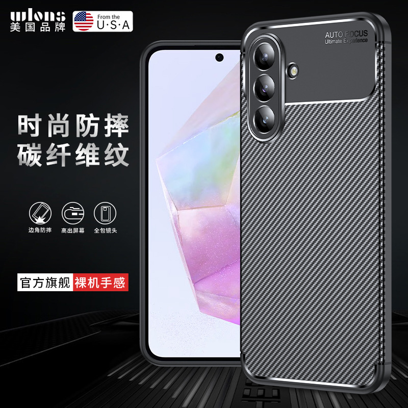 Casing ponsel pola serat karbon, casing pelindung tahan jatuh beku cocok untuk Samsung A35 M34