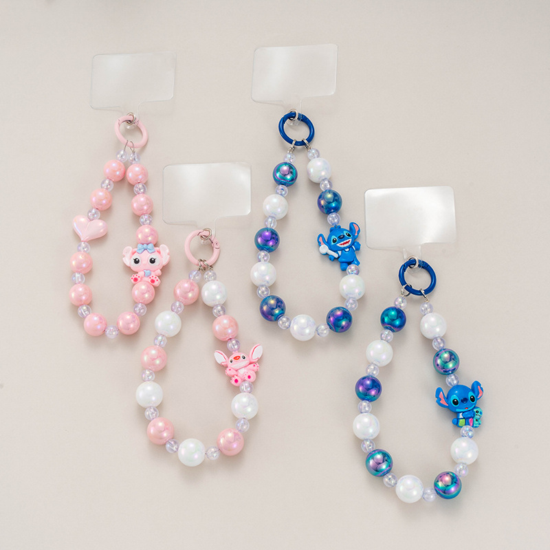 SDIE Rantai Ponsel Manik-Manik Elektropik Gantungan Kunci Mobil Gantungan Ponsel Cincin Cat Warna Permen Lucu Dengan Kartun