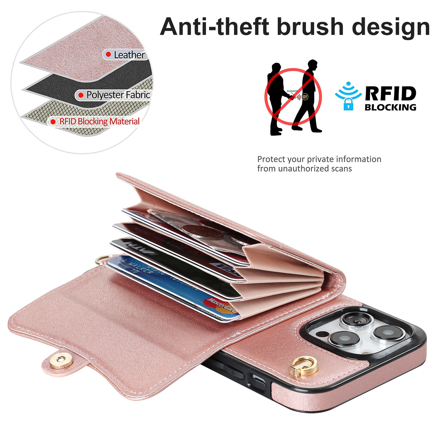 Cocok untuk casing ponsel anti-maling Apple 17 RFID, casing ponsel tas selempang multi-kartu anti-jatuh dengan resleting untuk Apple 17 Pro
