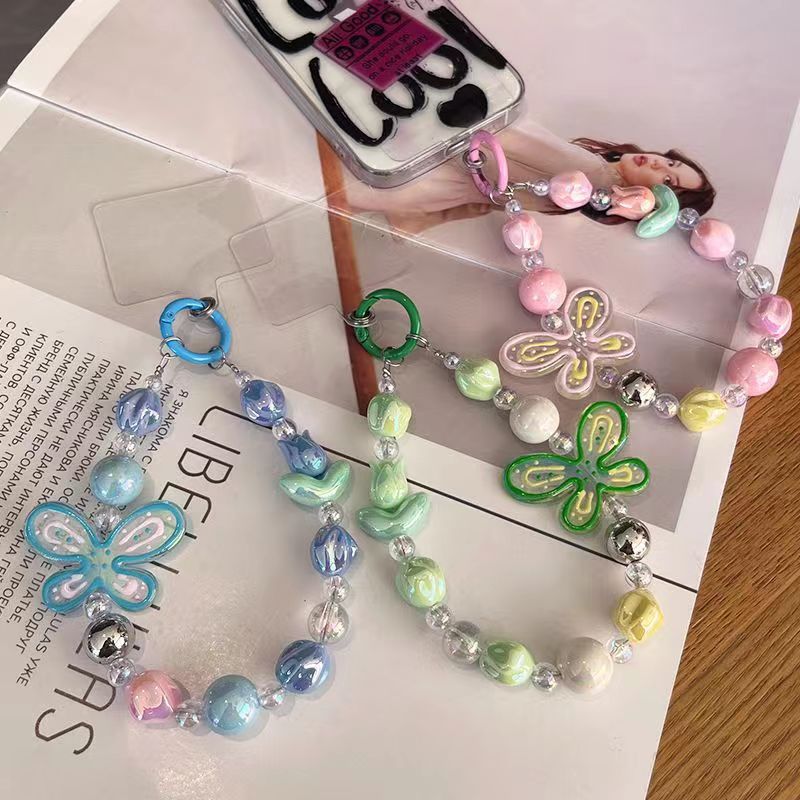 Rantai Ponsel Kupu-Kupu yang Dicat Tangan Model Baru Tas Earphone Gantungan Kunci Gantungan Rantai Manik-manik Model Sama Siaran Langsung Aksesoris Casing Ponsel