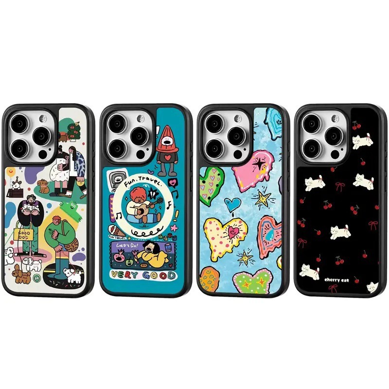 Cocok untuk Seri Graffiti Casing Magnetik Kaca AG Cocok untuk Apple 15/14PM Semua Tertutup Tahan Jatuh 13/12 Ponsel 16