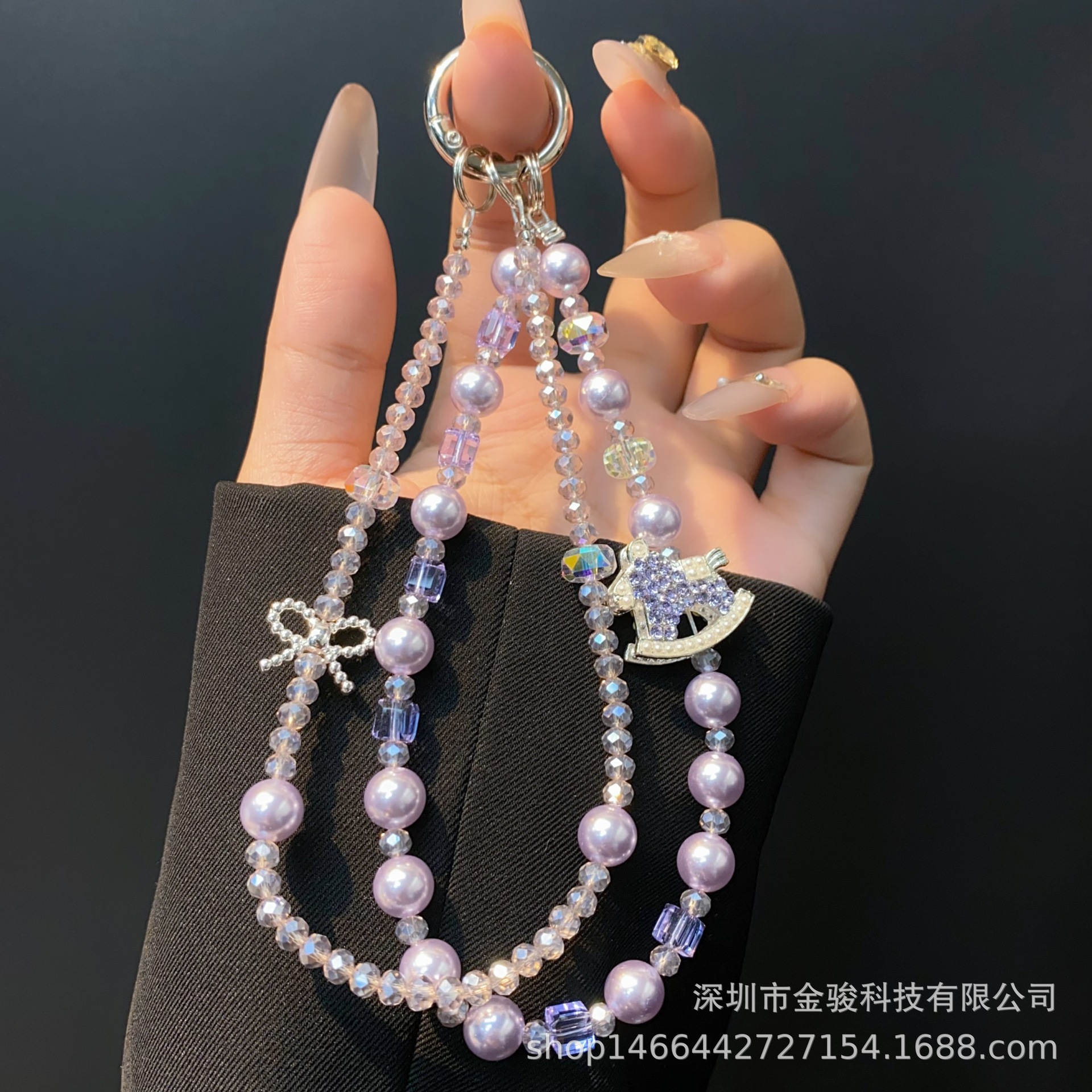 Rantai Ponsel Simpul Kupu-Kupu Berlian Imitasi Gaya INS Rantai Kristal Rantai Ganda Perhiasan Mutiara Rantai Kreatif Gantung Mobil Berkelas Tinggi Grosir