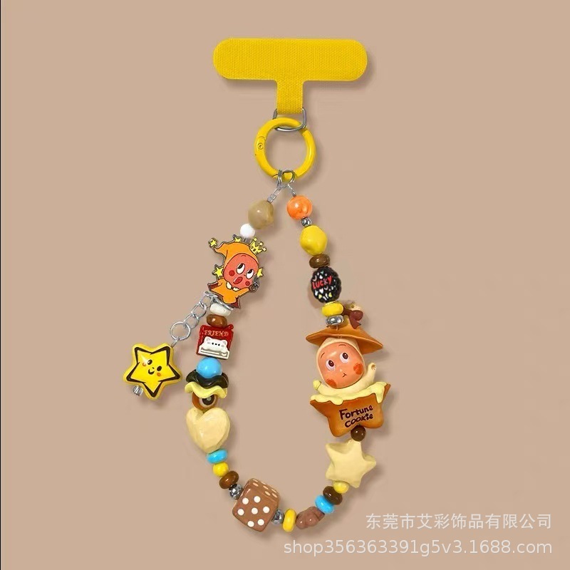 新款毛绒曲奇饼干手工串珠手链手机挂绳钥匙扣挂链手机通用挂件