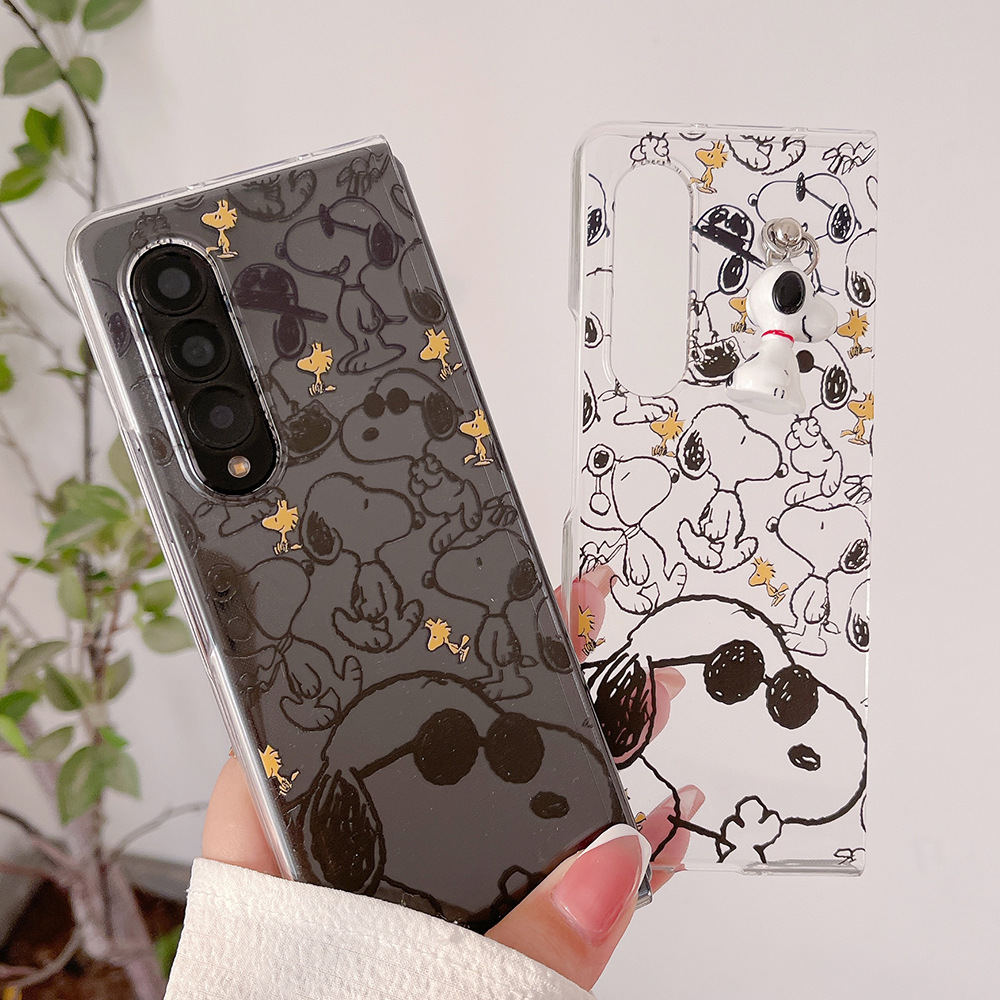 Casing ponsel lipat Samsung zfold5, casing pelindung PC transparan zfold4, gambar kartun Charlie dan anjing