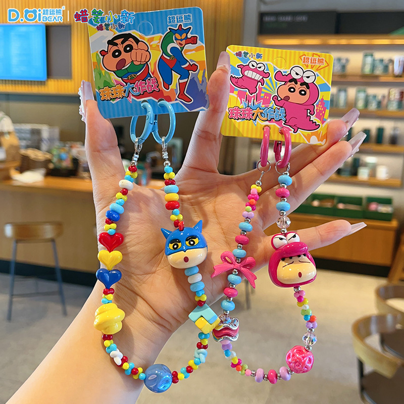 正版蜡笔小新手机链挂饰精致卡通小新串珠钥匙扣可爱公仔包包挂件