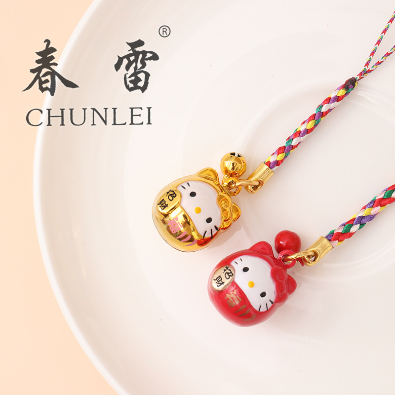 Bel perekrutan kucing perempuan lucu Jepang, Gantungan Kunci bel kucing Dharma, tas telepon genggam liontin ponsel