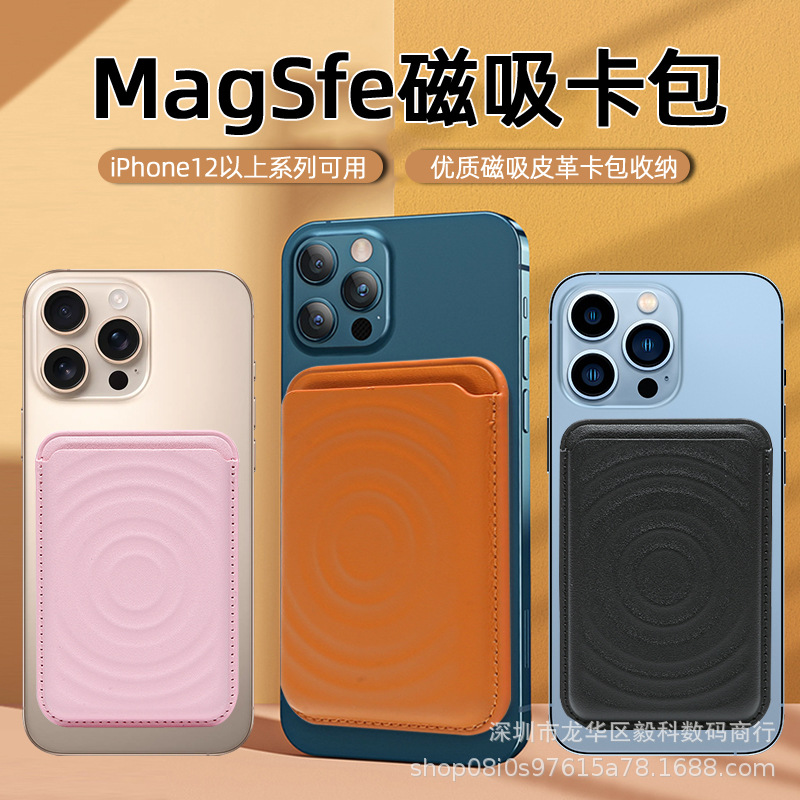 适用iphone12-16系列pu皮磁吸波漾卡包苹果手机PUmagsafe卡包现货