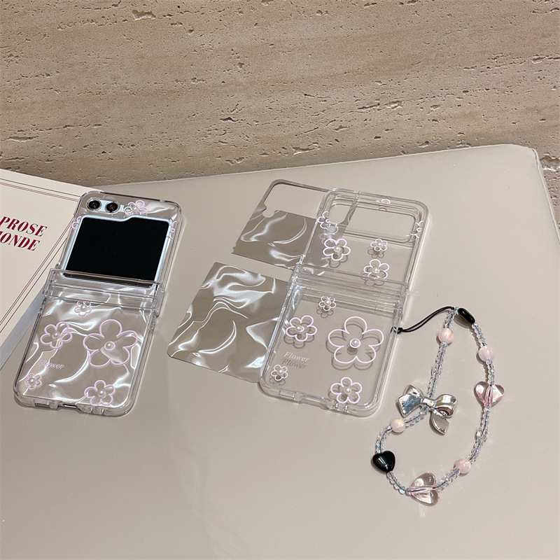 Casing Ponsel Galaxy ZFlip3/4/5 Samsung Generasi 6 Lipat Bunga Garis Merah Muda Sederhana Baru