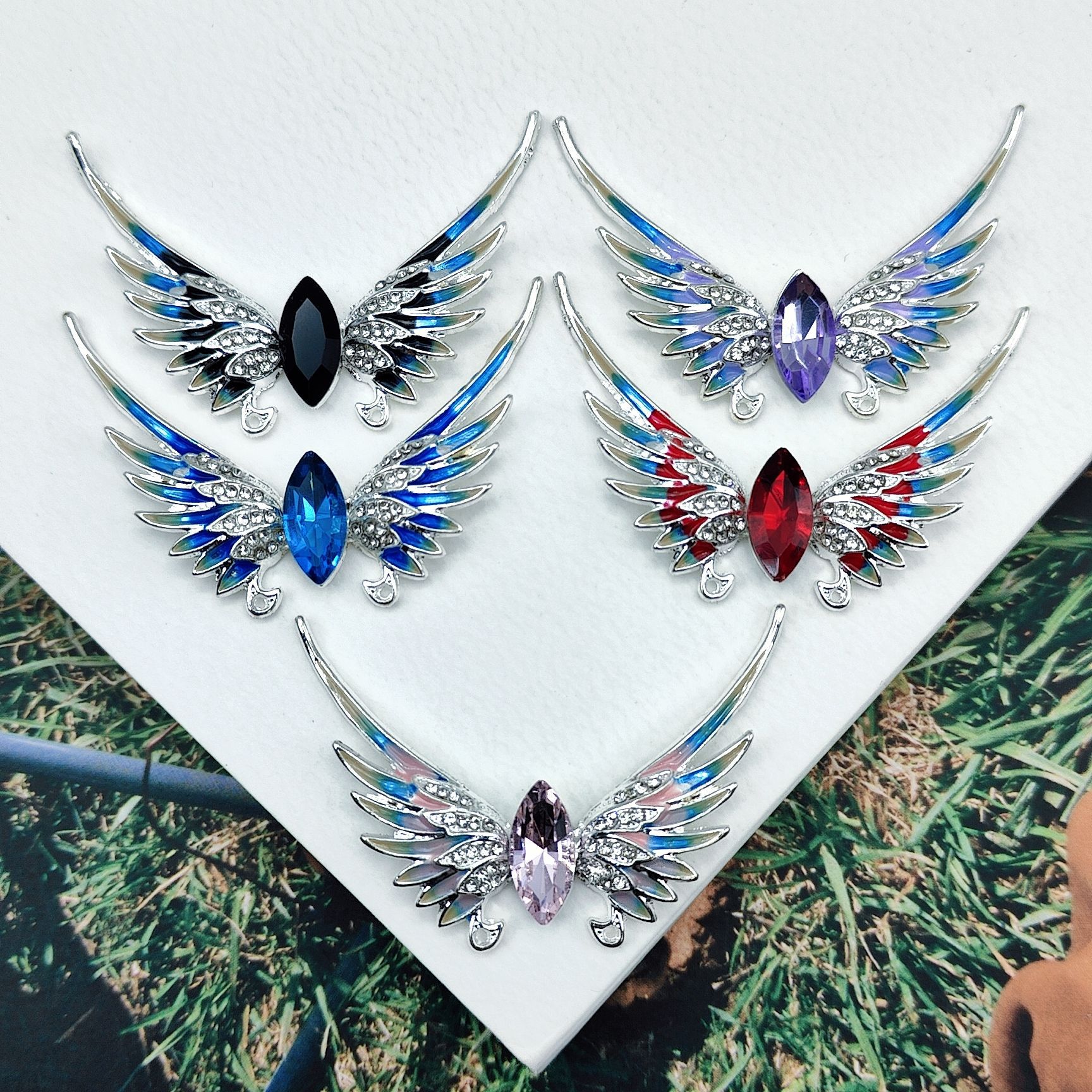 Aksesoris Perhiasan Sayap Malaikat Berlian Kristal Minyak Drop Paduan Kepribadian Model Baru Aksesoris Rambut DIY Casing Ponsel Aksesori Buatan Tangan