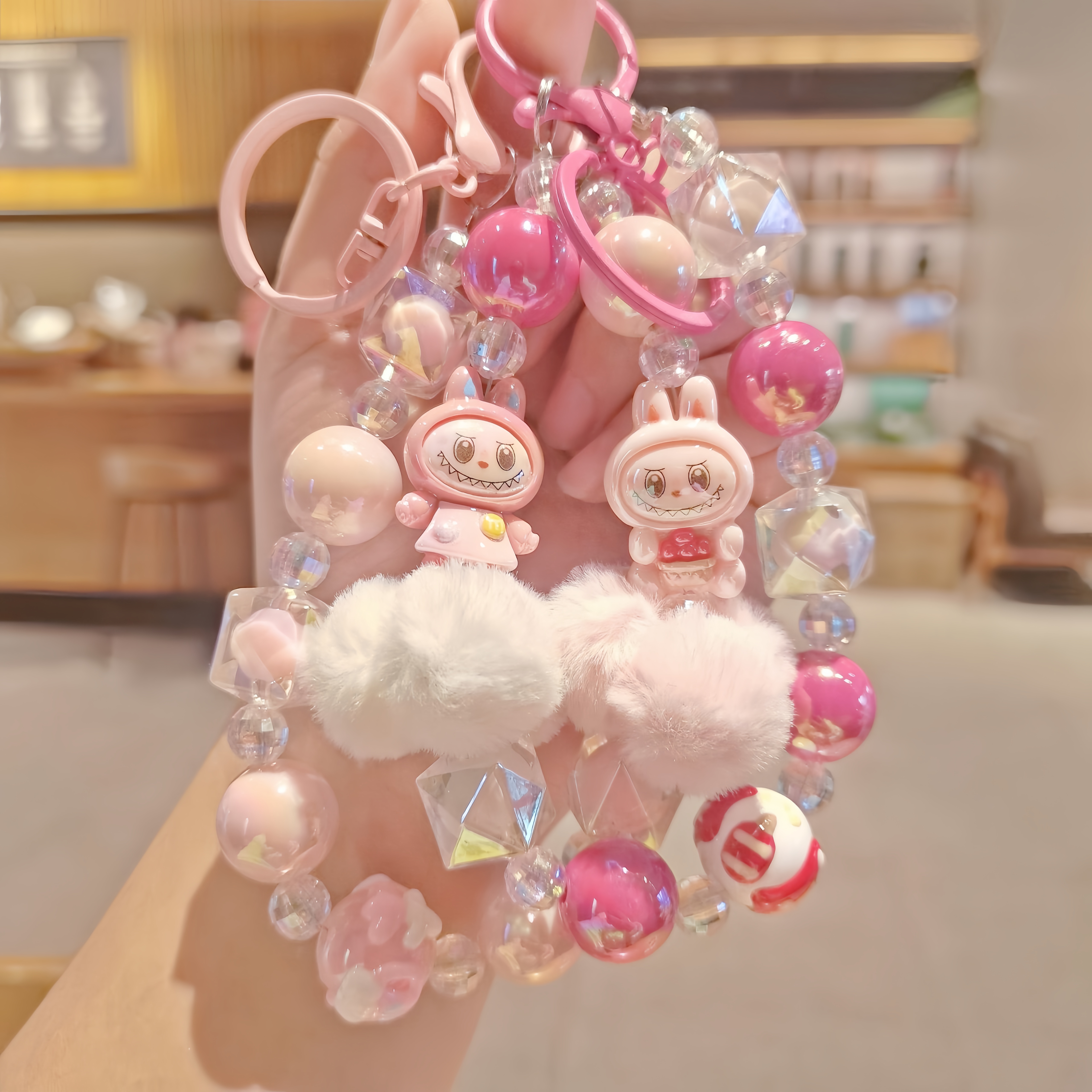 新款卡通公仔手机链条串珠手机挂件手腕短手机挂绳钥匙扣包包挂饰