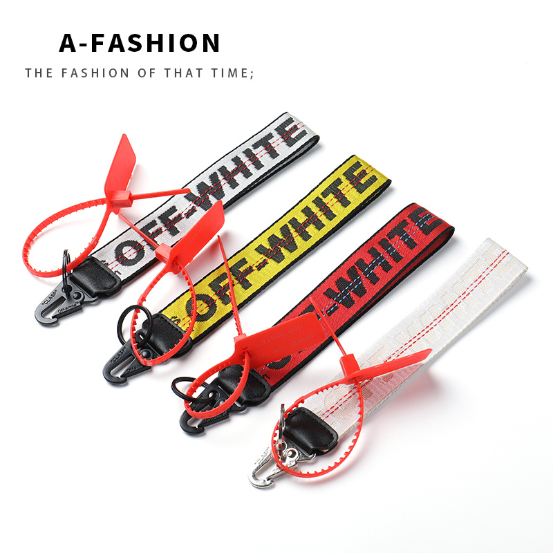 Dalam stok logo Tide merek bordir kanvas gantungan kunci tas putih aksesori kamera jeans liontin ponsel