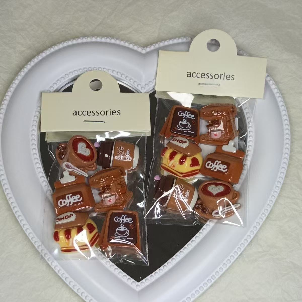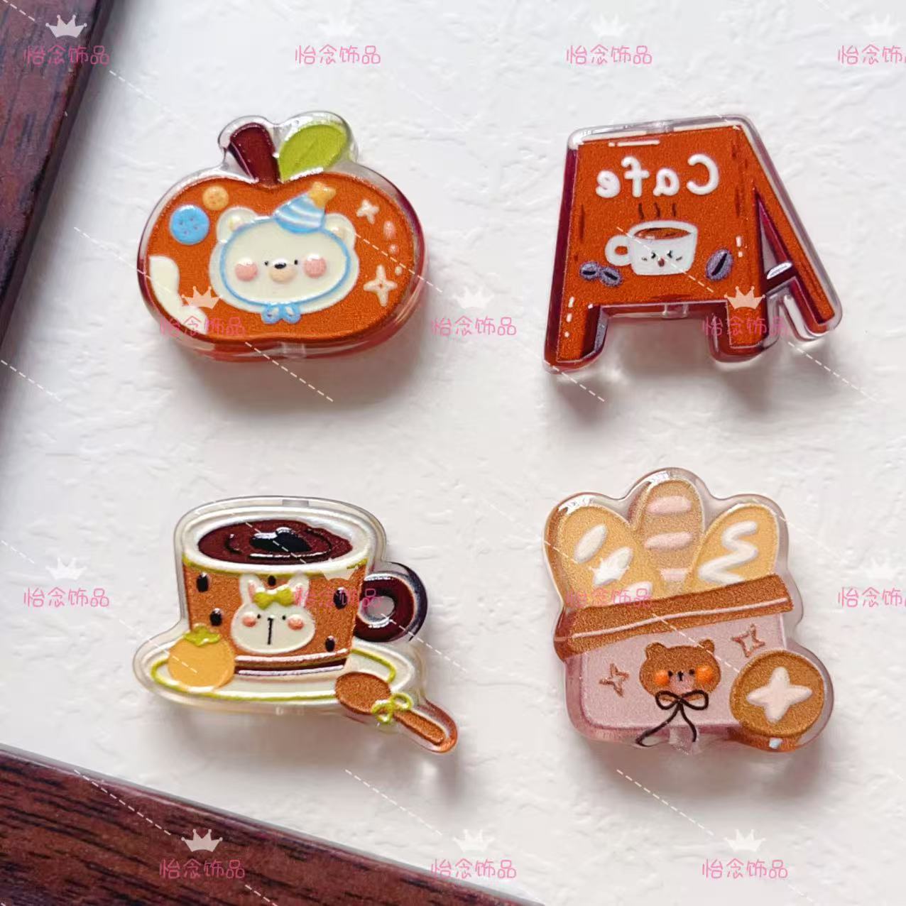 浮雕咖啡牌面包苹果亚克力板材串珠 diy手机链钥匙扣包挂饰品配件