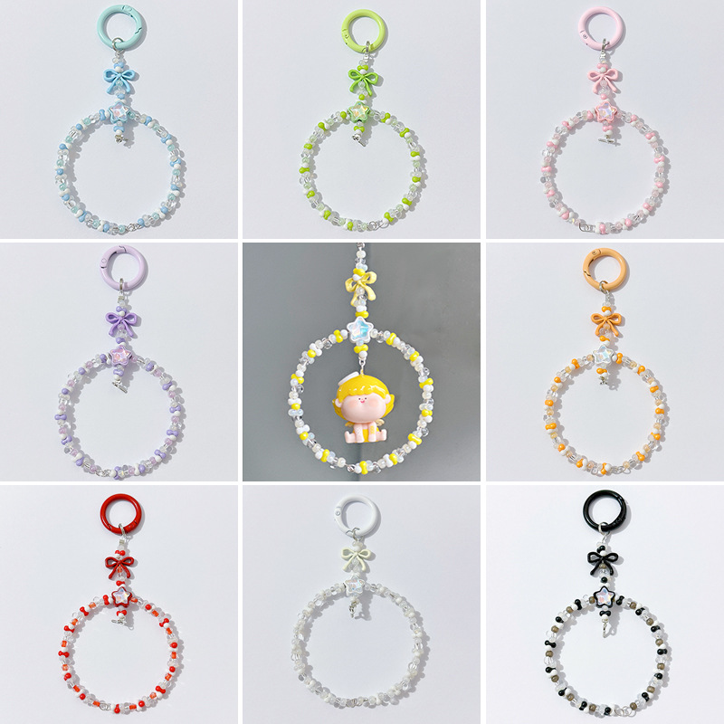 Rantai Ponsel Manik-Manik Simpul Kupu-Kupu Krim Lucu Gantungan Kunci Aksesori Tas Indah Wanita Gantungan Kunci Mobil Gantungan Kecil