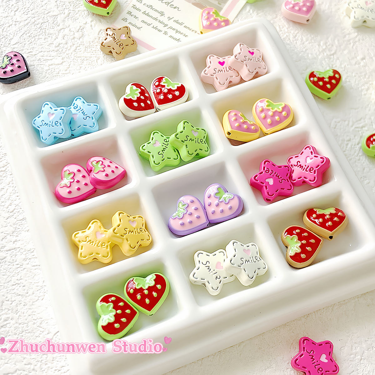 可爱日系星星草莓多彩合金珠子串珠DIY手工饰品项链手机链配件