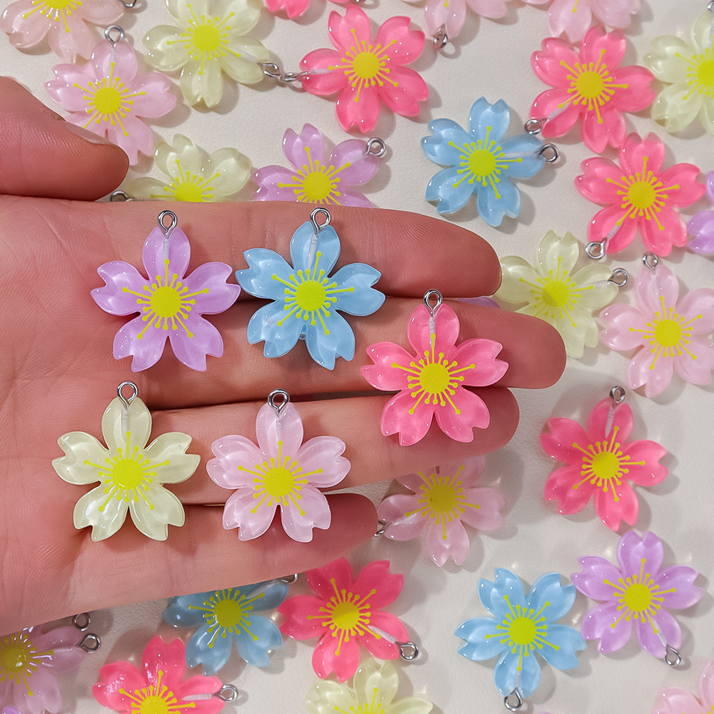 冰透五瓣花樱花树脂吊坠挂件配件diy钥匙扣手机挂耳环项链配饰