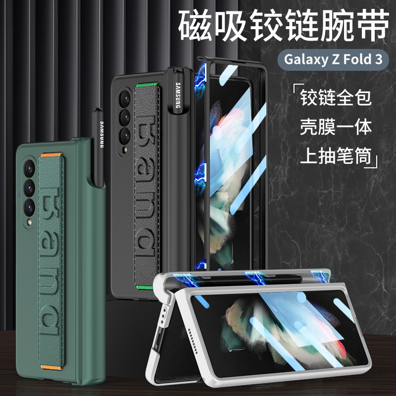 Berlaku untuk Samsung zfol3 cangkang ponsel lipat, film penutup penuh magnetik tali pergelangan tangan ultra-tipis penutup pelindung pegangan pena