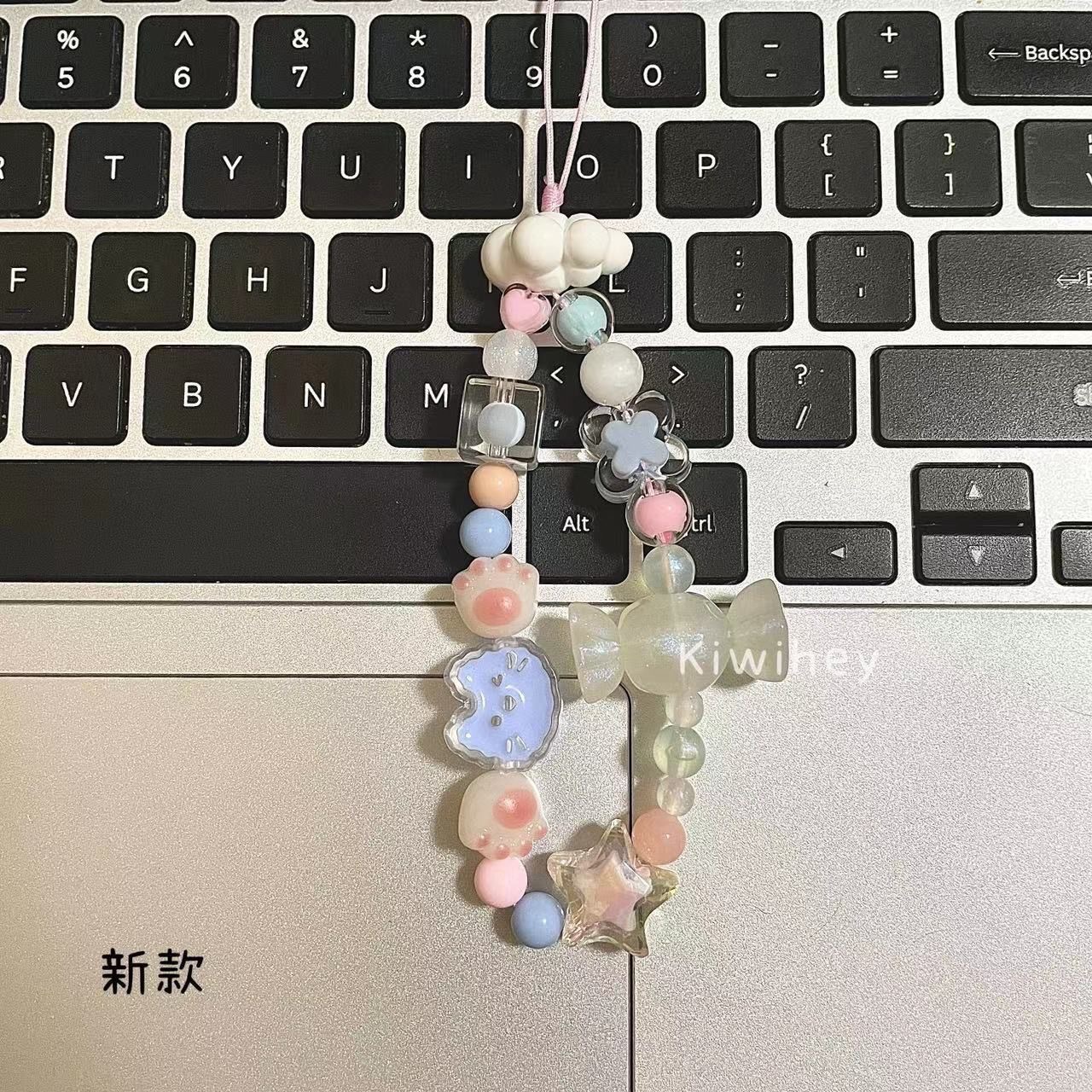 Cocok untuk pita mutiara telepon seluler lanyard Kristal Beruang Anak perempuan manik-manik Hati rantai ponsel liontin cinta