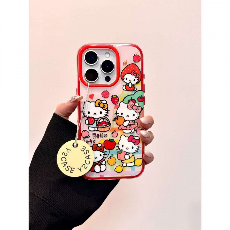 二合一可爱卡通满屏荔枝苹果Kitty猫手机壳适用iPhone16151413壳