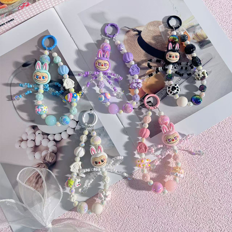 新款树脂卡通手机链公仔萌粒串珠挂饰钥匙扣盲盒包包手机挂件