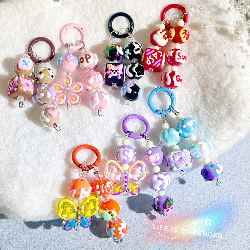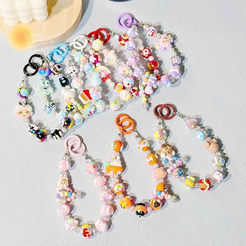 Rantai Ponsel Gantungan Ponsel Manik-Manik Kartun Model Baru Manik Manik-Manik Gantungan Ponsel Klip Punggung Tas Gantungan Kunci Aksesoris