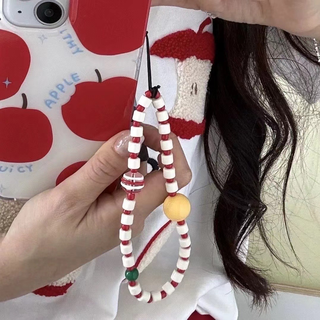 Lukisan tangan manik rantai ponsel pendek siaran langsung gaya sama dengan boneka grain lucu tas rantai bermanik ornamen gantungan kunci grosir