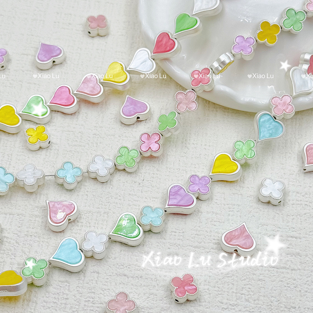 亚银珍珠银板材四叶草爱心合金手工diy串珠手机链项链发饰品配件