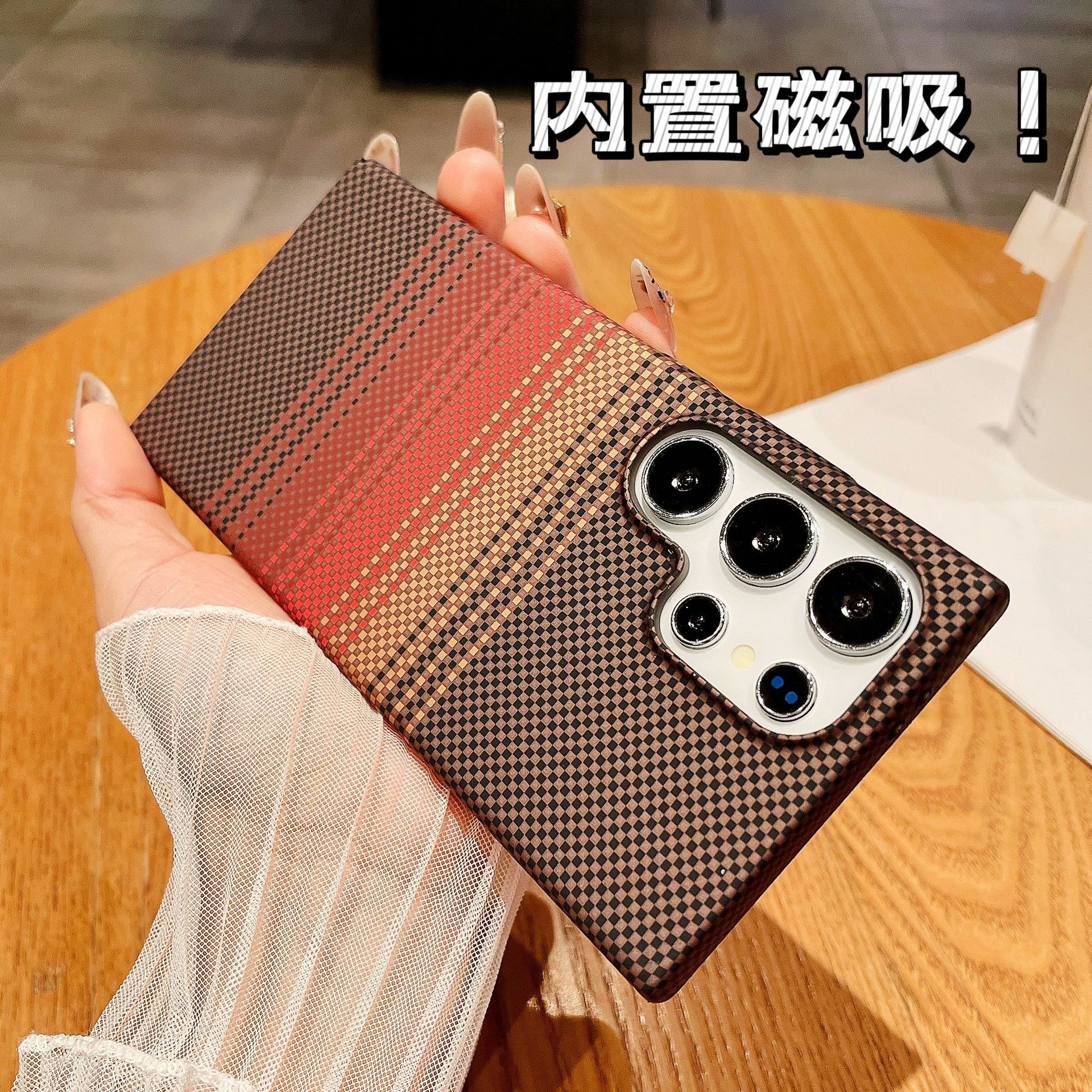 适用三星S25Ultra手机壳A17凯夫拉水贴纹S24内置磁吸S23U硬套跨境